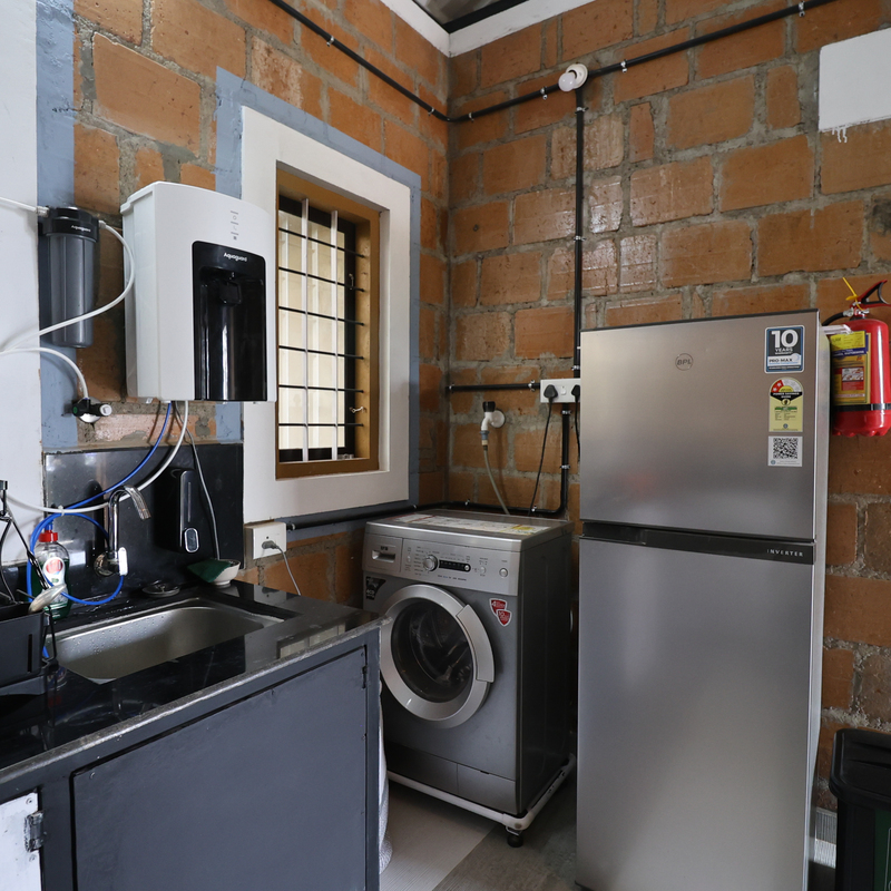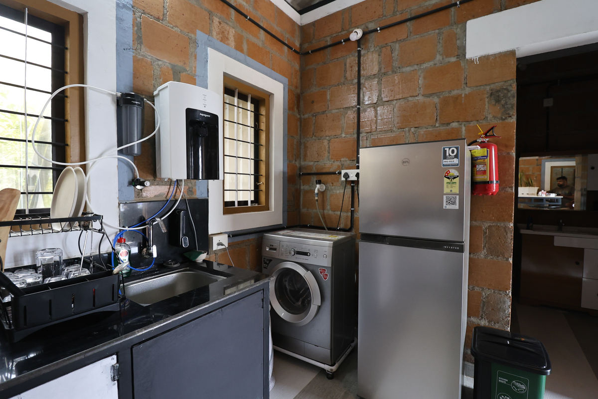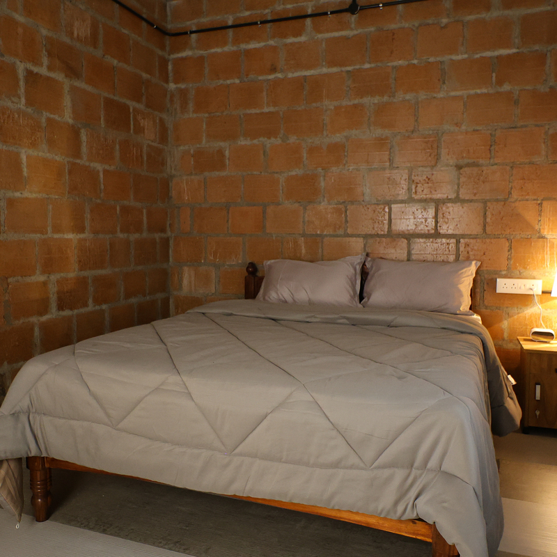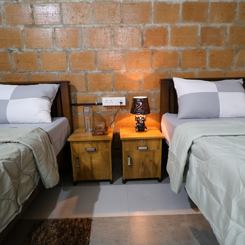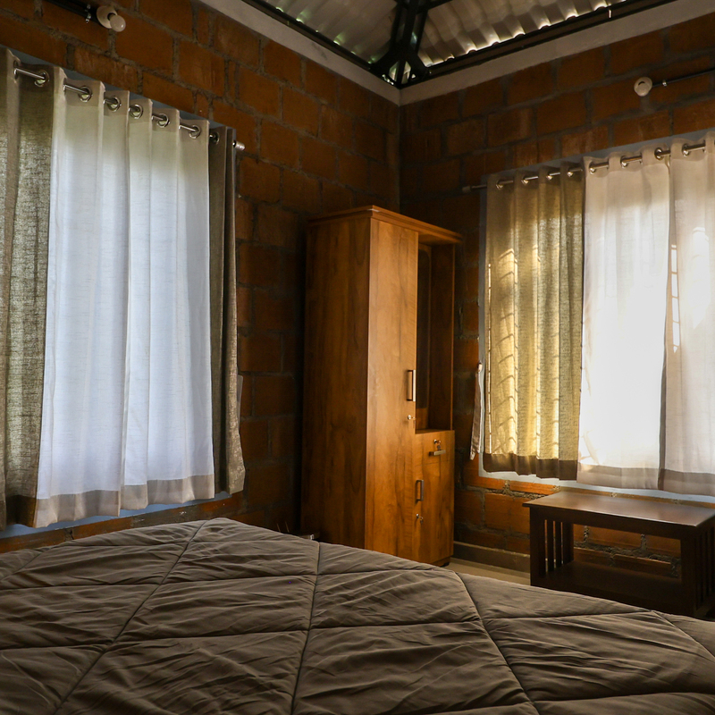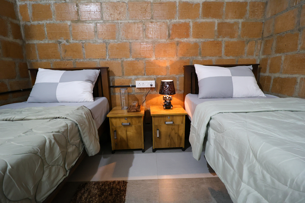 This configuration transforms into our spacious Family Suite, where the combined twin and double bed spaces offer ample comfort and privacy for the entire group. Built with insulating mud brick to guarantee a naturally cooler temperature, this room goes beyond typical amenities, featuring a convenient double-door refrigerator, washing machine, and cooking stove, complemented by a high-quality water purifier. Your comfort and safety are paramount, with essential, yet discreet, facilities like a fire extinguisher and first aid box readily available, all backed by the warmth of our genuine local hospitality.